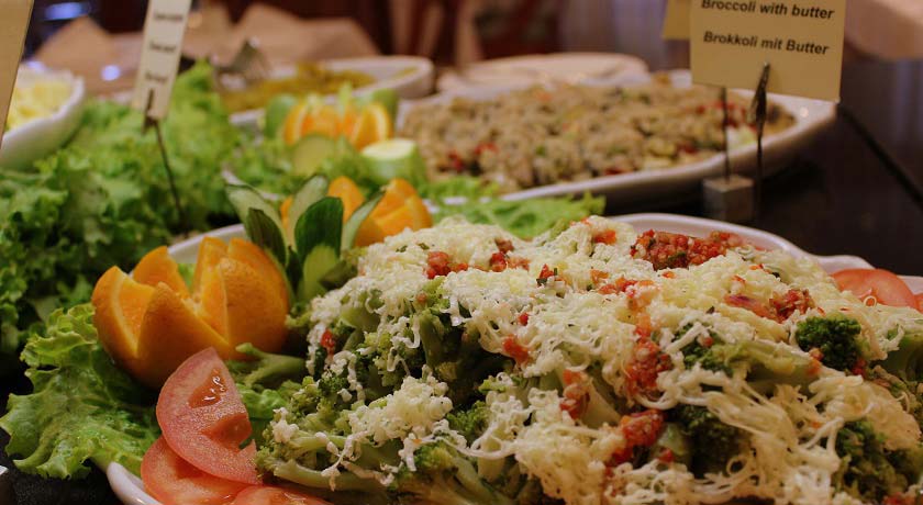 Gastronomy: • Half board (breakfast and dinner) Breakfast Varied buffet with: Wholegrain products, On the spot cooking station • Lunch: Light fare at the poolside snack bar/barbecue • Dinner: Buffet with hot and cold starters, Buffet with main courses and dishes prepared on the spot. Vegetarian options available, Dessert buffet • Special evenings: Theme buffet (twice a week)