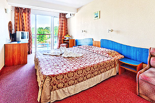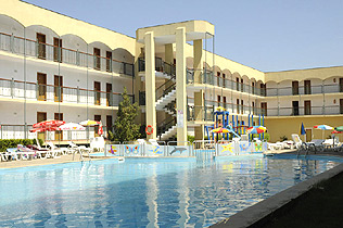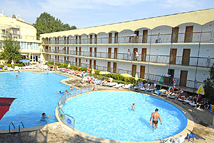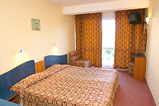 Accommodation: The Amfora Beach Hotel offers convenient accommodation in 230 spacious double, 21 cosy family rooms ( 2 double rooms joined by intermediate door, suitable for families with 2 children) and 16 one-bedroom suites. The décor and furnishings are set in bright colour. The rooms and apartments are equipped with air-conditioning, WC/bathroom with shower, balcony, TV set, direct dial phone and hairdryer.