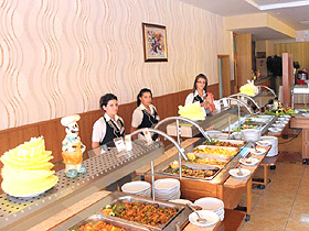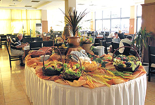 Food in a hotel is fantastic. You won't be sory if you eat there. It is much more cheaper to eat there and the food is great. You can choose diferent meels.