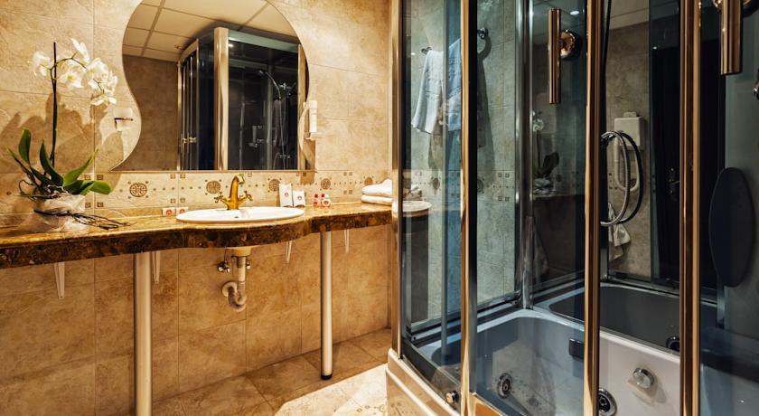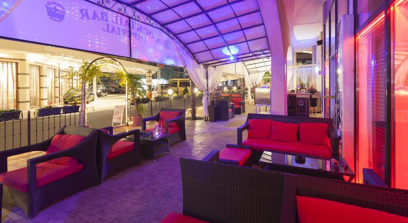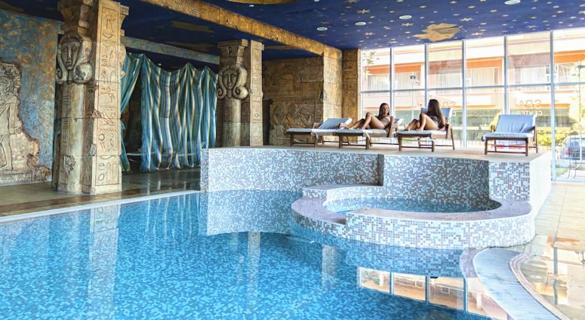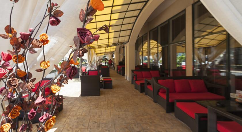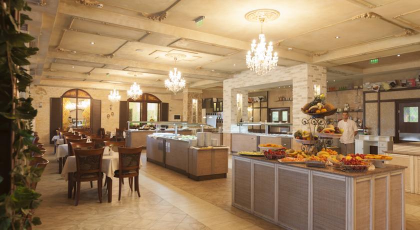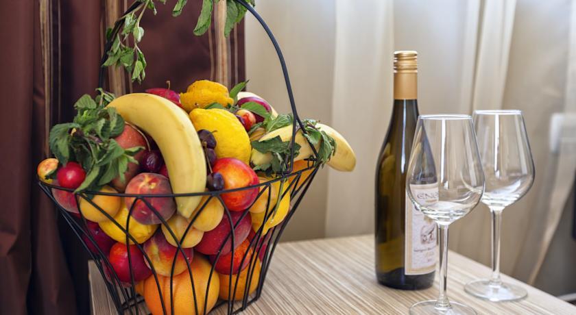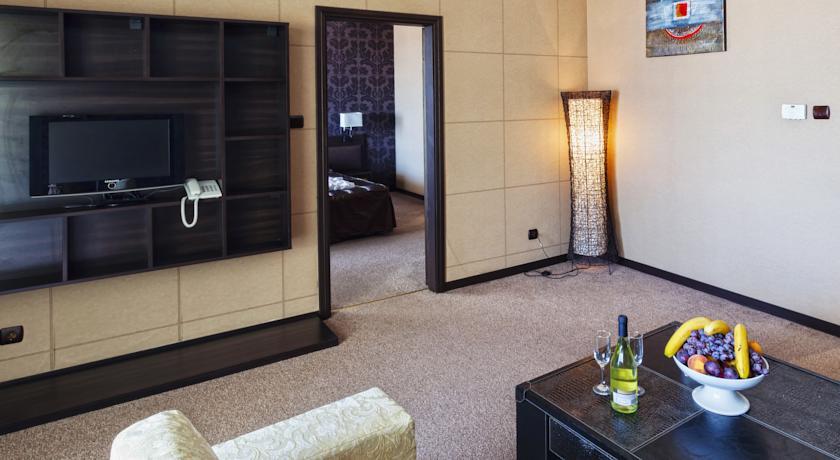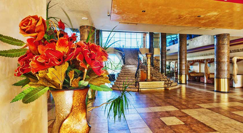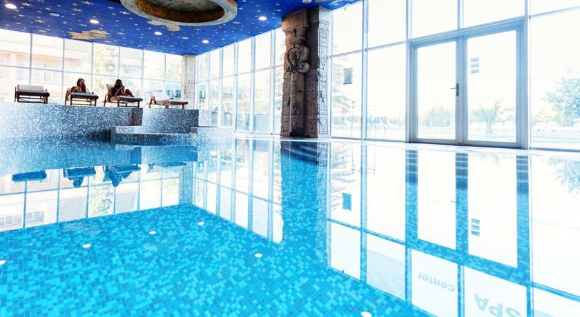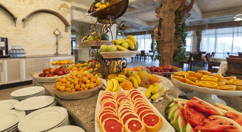 In the hotel: Lobby bar, “Amfora” restaurant, “Imperial” restaurant with a large balcony on the second floor; spa centre with different types of massages, sauna, aromatherapy, steam bath, fitness, indoor pool, outdoor swimming pool with fresh water, separated children pool and a pool bar; doctor, conference halls for 220 persons, internet service, mini supermarket.