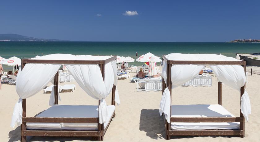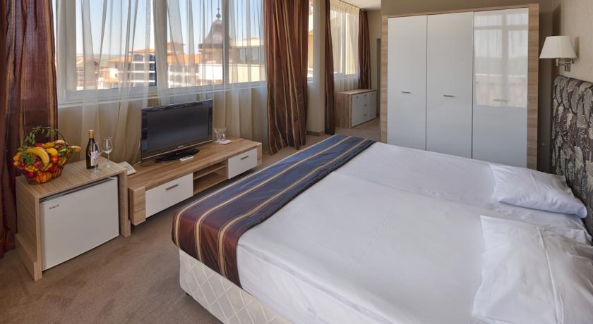 great hotel on the beach. really nice sea and pool view in room 515 food was ok. hotel in great location 15 min from center of sunny beach and 30 min walk from nessebar. rooms well decorated and modern good for all family types groups couples ect.