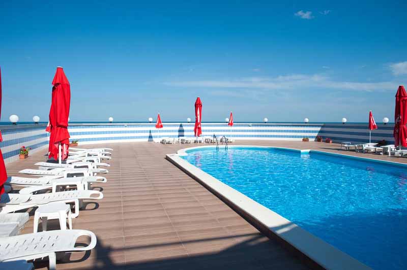 • The Lilia Hotel is situated 30 meters from the beach among lush greenery. • Hotel has a superb frontline location in the the resort and just 600 metres from the centre. • Lilia hotel offers rooms with air conditioning and a balcony each, breakfast and free parking nearby. • Guests of the Lilia can relax at the outdoor roof top swimming pools or directly at the sandy beach of Golden Sands. • The Golden Sands Resort is situated 17 km north of Varna, at the foot of the Frangen Plateau. • It is a unique combination of calm and warm sea, century-old forests extending down to the very sea shore, and a beach covered with fine golden sand.