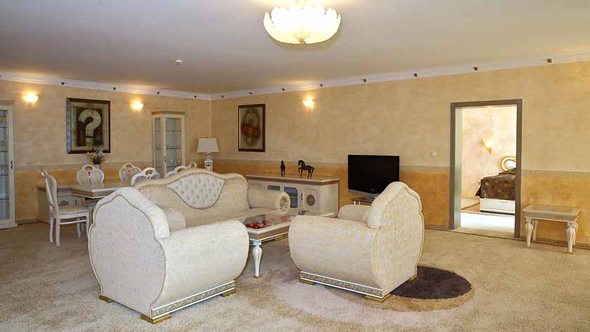 Presidential Suite offers two bedrooms with king-size bed and one large living room with luxury furniture and sea view. Suitable for maximum occupancy of four adults.