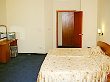 expand textthere for last week in may 2004 hotel superb, food more suited to the german guests, but still very nice selection to please all. you could upgrade to a sea view for a few £ a night if available. nothing to much trouble for staff would return again. small train stops outside hotel to take you into resort centre and return for a few levs. get sunbed matresses by inside pool. if you walk down to beach its a nice walk on the beach to nessebar. phoneing from hotel quite reasonable costs.